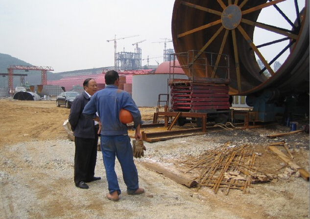 公司董事長朱文清專程趕赴蕪湖繁昌Φ6.2×96m回轉(zhuǎn)窯筒體制作現(xiàn)場(chǎng),公司總工程師濮理金同志陪同前往。董事長慰問了現(xiàn)場(chǎng)露天工作的職工們,強(qiáng)調(diào)現(xiàn)場(chǎng)工作安全第一,并對(duì)前期工作予以充分的肯定。對(duì)下一步的工作提出了要求,希望同志們?cè)俳釉賲枴⒖朔щy做好接下來的各項(xiàng)工作,出色完成這次艱巨的任務(wù)。