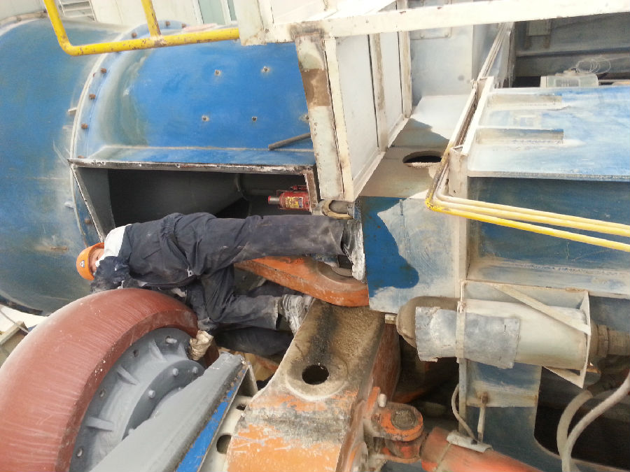 大型立磨工作是電動機通過減速機帶動磨盤轉動,物料從下料口落到磨盤中央,在離心力的作用下向磨盤邊緣移動并受到磨輥的碾壓,粉碎后的物料從磨盤邊緣溢出,同時被來自噴嘴環(風環)高速向上的熱氣流帶至與立磨一體的高效選粉機內,粗粉經分離器分選后返回到磨盤上,重新粉磨;細粉則隨氣流出磨,在系統的收塵裝置中收集下來,即為產品。沒有被熱氣流帶起的粗顆粒物料和意外進入的金屬件從風環處沉落,由刮料板刮出后,經外循環的斗提機喂入磨內再次粉磨。大型立磨是通過采用粒間層壓原理設計的特殊磨粉腔及與之相匹配的轉速,取代傳統的單顆粒磨粉原理,實現對物料的選擇性磨粉的,可以顯著提高產品細料比例和立方體含量,極大程度上減少針片狀物料,實現成品粒度均勻,粒型優美。但是如果大型立磨出現問題,可能出現出料不均勻的現象,為什么會出現這種問題?經過分析總結,主要有以下四個原因。