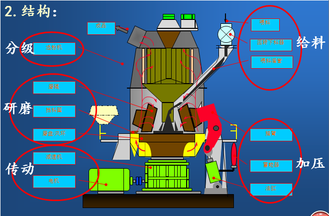 1、磨盤:包括導向環、風環、擋料圈、襯板、盤體、 刮料板和提升裝置等。