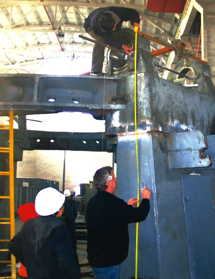 立磨磨輥軸承室磨損立磨磨輥軸承的裝配要求比較嚴格,企業一般采用將軸承放在干冰中冷卻的方式裝配。軸承和軸承室之間一旦出現間隙,將會影響軸承的正常運轉,導致軸承發熱,嚴重時將會導致軸承燒結現象。傳統補焊刷鍍等方法都存在一定的弊端:補焊會產生熱應力造成軸承材質受損,嚴重時會變形甚至斷裂;刷鍍污染較重,且鍍層厚度受限,應用受到較大限制。高分子復合材料既具有金屬所要求的強度和硬度,又具有金屬所不具備的退讓性,通過“模具修復”、“部件對應關系”、“機械加工”等工藝,可以大限度確保修復部位和配合部件的尺寸配合;同時,利用復合材料本身所具有的抗壓、抗彎曲、延展率等綜合優勢,可以有效地吸收外力的沖擊,極大化解和抵消軸承對軸的徑向沖擊力,并避免了間隙出現的可能性,也就避免了設備因間隙增大而造成的二次磨損。