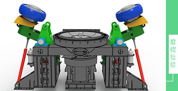 3、運(yùn)行可靠,檢修方便。磨輥檢修時(shí),可翻出機(jī)體外,對(duì)四個(gè)磨輥的大型機(jī),當(dāng)一個(gè)或?qū)ΨQ位置的兩個(gè)磨輥檢修時(shí),利用另兩個(gè)對(duì)稱的磨輥運(yùn)行,可達(dá)正常產(chǎn)能的60~70%,不影響或少影響整條生產(chǎn)線;