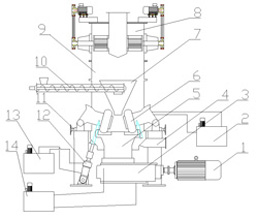 1 主電動機 2 磨輥稀油站 3 減速機 4 機座(進風口)