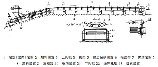 膠帶輸送機又稱皮帶輸送機,輸送帶根據摩擦傳動原理而運動,適用于輸送堆積密度小于1.67/噸/立方米,易于掏取的粉狀、粒狀、小塊狀的低磨琢性物料及袋裝物料,如煤、碎石、砂、水泥、化肥、糧食等。膠帶輸送機可在環境溫度-20℃至+40℃范圍內使用,被送物料溫度小于60℃。其機長及裝配形式可根據用戶要求確定,傳動可用電滾筒,也可用帶驅動架的驅動裝置。
